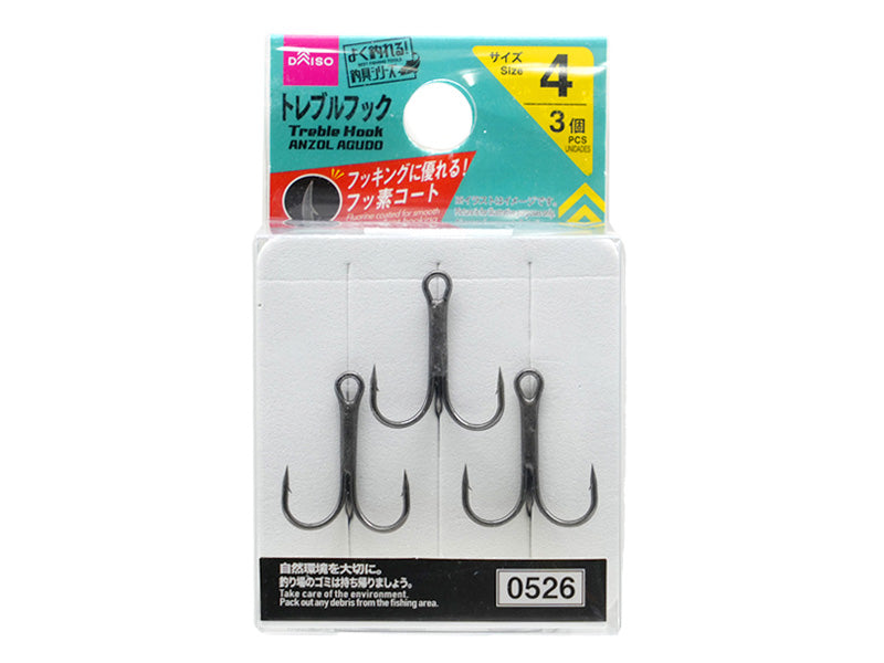 3本の釣り針を溶接してまとめた、ルアーゲーム用のフックです。 フッ素加工●イラストはイメージです。主にルアーのお腹部分と最後尾部分に装着します。フッキングに優れる! シルバー×3個入 フック上部の穴と、ルアーの穴をスプリットリングで接続します。  使用例 スプリットリング(別売り) ルアー(別売り)真水で洗った後水分を拭き取り、よく乾燥させます。●お子様の手の届かない場所に保管してください。●直射日光・高温多湿の場所を避けて、保管してください。●お子様が使用する際は、保護者と一緒に使用してください。●周囲の安全を確認した上で使用してください。●針先は鋭く大変危険です。取扱いには注意してください。●使用済みの釣り糸・釣り針は必ず持ち帰り、処分してください。●火や熱源のそばに置かないでください。●本来の用途以外に使用しないでください。●自然環境を大切に。釣り場のゴミは持ち帰りましょう。