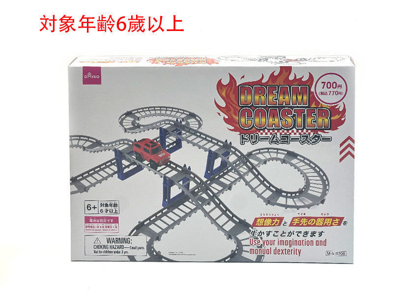 商品サイズ:レール1:20×7.8×1.2cm、レール2:11.8×6.0×1.2cm、レール3:15.1×5.5×1.2cm、レール4:16.5×5.5×1.2cm、レール5:7.8×5.5×1.2cm、支え柱上部:6.5×6.0×2cm、支え柱下部:6.9×2.0×2.0cm、車両:4.1×4.3×7.8cm