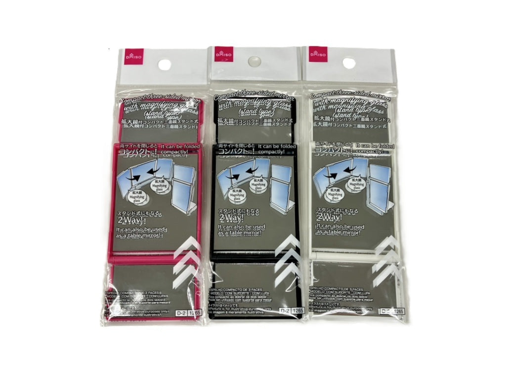 両サイドを閉じるとコンパクトに!スタンド式にもなる2 Way!拡大鏡付だからアイメイクにも大活躍!!●拡大鏡は鏡面を凹状にすることにより対象物を大きく映し出しています。焦点の合わない距離では歪んで見えますが、焦点の合う距離では問題なく使用いただけます。●落としたり、ぶつけたりしないでください。●乳幼児の手の届かない場所で使用・保管してください。●破損した場合、直ちに使用を中止してください。●火や熱源のそばに置かないでください。●本来の用途以外に使用しないでください。●発火の恐れがあるため直射日光のあたる場所に置かないでください。●日光の直射で焦点を結ばないでください。●太陽を直視しないでください。