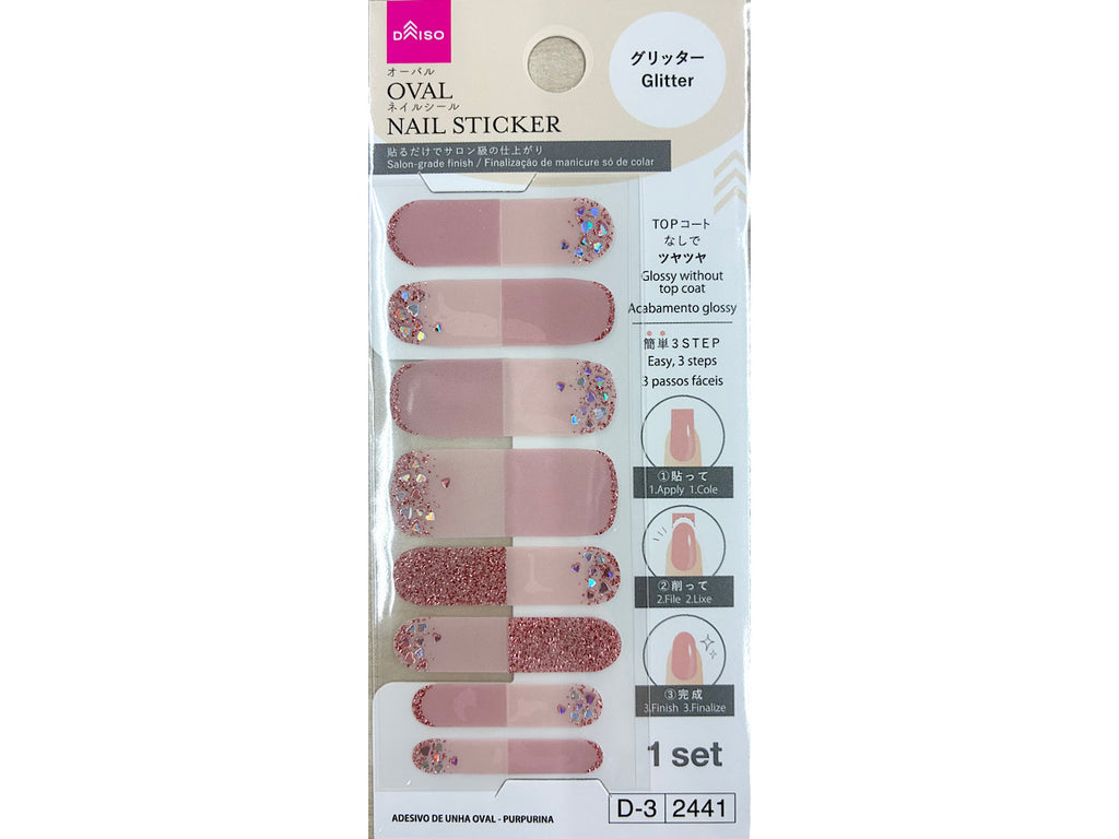 貼るだけでサロン級の仕上がり 簡単3STEP TOPコートなしでツヤツヤ 1 set※爪用やすりは付属しておりませんので、別途お買い求めください。●爪を爪磨き等で磨いてきれいに整えます。●①爪の幅に合うシールをシートからゆっくりとはがします。●②爪の甘皮ラインの1mm内側に合わせてまっすぐにのせます。●※シールはやわらかく、破れやすいです。注意してください。●③指の腹で押し付けるように両サイドを密着させます。●④爪用やすりで爪先の余分なシールを上から下へ一定方向でゆっくりと削ります。●仕上げにトップコートを塗るとより長持ちします。 ●※トップコートの種類によっては、変色する場合があります。●はがす際は、端からゆっくりめくります。蒸しタオルで温めたり、お湯に浸すとはがしやすくなります。 ①貼って ②削って ③完成 方向 ●直射日光・高温多湿の場所を避けて、保管してください。●乳幼児の手の届かない場所に保管してください。●長時間の水仕事や入浴をした場合はシールがはがれやすくなります。●爪に糊が残る場合があります。その際は、お湯やアルコールまたはリムーバーを使用すると簡単に除去できます。●飲み込まないように注意してください。●目に入れると危険です。●爪に異常がある場合は使用しない●爪に異常を感じたら使用中止●長時間使用しない●火や熱源のそばに置かない●用途外に使用しない