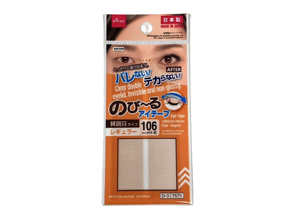 ②二重にするラインを決め、テープを貼ります。押し付けて貼りたい場合はテープをお好みの長さに引っ張って貼ってください。テープが長すぎる場合はテープをカットしてご使用ください。