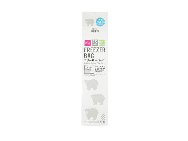 ダブルジップフリーザーバッグ(ワイド、しろくま柄、15枚)