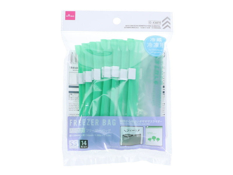 ●食品の保存に ●冷凍・冷蔵用 ●スライダー付で開け閉めラクラク ●ギザギザスライダーで開け閉め実感! ●開閉が心地よいギザギザスライダー ●スライダー付 ●SS●イラストはイメージです。●寸法:縦150mm × 横130mm 内寸:縦145mm × 横130mm ●厚さ:0.06mm ●枚数:14枚 ●耐冷温度:-20℃●乳幼児の手の届かない場所に保管してください。●本品は液状の食品を入れると開口部より液漏れする場合があります。ご注意ください。 ●熱い食品に使用しないでください。 ●湯煎はしないでください。 ●密封後、袋を押さえつけたり、重いものを載せたりしないでください。 ●水分が多いものを入れて横置きする場合や、解凍する場合は受け皿などを使用してください。漏れる恐れがあります。 ●調理後の食材を入れる際は、必ず冷ましてから入れてください。 ●液体を入れて持ち運ばないでください。 ●印刷面が皿や食品などに触れないようにしてください。色移りの恐れがあります。●オーブン・オーブントースター・電子レンジは使用しないでください。●尖ったものや鋭利なものを入れないでください。●直射日光・高温の場所を避けて、使用・保管してください。●火や熱源のそばに置かないでください。●本来の用途以外に使用しないでください。