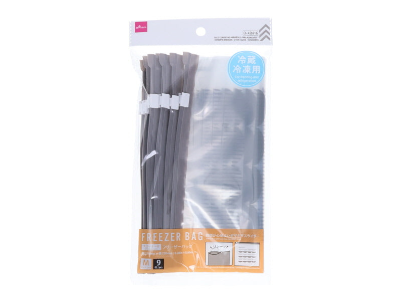 ●食品の保存に ●冷凍・冷蔵用 ●スライダー付で開け閉めラクラク ●ギザギザスライダーで開け閉め実感! ●開閉が心地よいギザギザスライダー ●スライダー付 ●M●イラストはイメージです。●寸法:縦210mm × 横220mm 内寸:縦205mm × 横220mm ●厚さ:0.06mm ●枚数:9枚 ●耐冷温度:-20℃●乳幼児の手の届かない場所に保管してください。●本品は液状の食品を入れると開口部より液漏れする場合があります。ご注意ください。 ●熱い食品に使用しないでください。 ●湯煎はしないでください。 ●密封後、袋を押さえつけたり、重いものを載せたりしないでください。 ●水分が多いものを入れて横置きする場合や、解凍する場合は受け皿などを使用してください。漏れる恐れがあります。 ●調理後の食材を入れる際は、必ず冷ましてから入れてください。 ●液体を入れて持ち運ばないでください。 ●印刷面が皿や食品などに触れないようにしてください。色移りの恐れがあります。●オーブン・オーブントースター・電子レンジは使用しないでください。●尖ったものや鋭利なものを入れないでください。●直射日光・高温の場所を避けて、使用・保管してください。●火や熱源のそばに置かないでください。●本来の用途以外に使用しないでください。