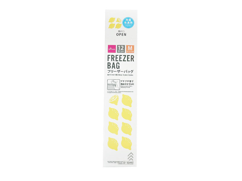 ダブルジップフリーザーバッグ(レモン柄、12枚)