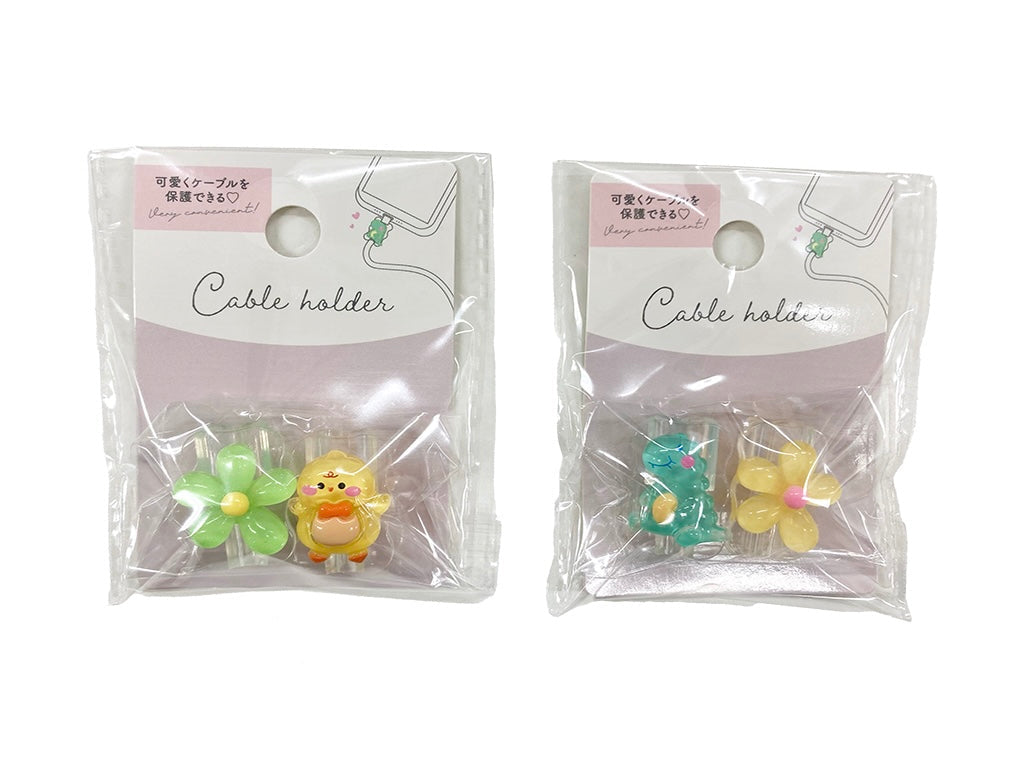 可愛くケーブルを保護できる【どちらかが入ってます】 ヒヨコ・グリーンフラワー・恐竜・イエローフラワー【ご使用方法】 本体にケーブルのネックの部分を挟みます。【使用上の注意】 ●本来の用途以外使用しないでください。●変形・破損した場合、直ちに使用を中止してください。●直射日光・高温多湿の場所を避けて、使用・保管してください。●乳幼児の手の届かない場所に保管してください。●高温、火気の側でのご使用は商品の変質、火傷の原因になりますのでおやめください。 ●ケーブルは種類や形状によっては使用できない場合があります。●本製品はケーブルの断線を完全に防ぐものではありません。●無理に装着すると破損することがありますので、ご注意ください。●本製品を使用中に発生した損失・損害には責任を負いかねますので、予めご了承ください。