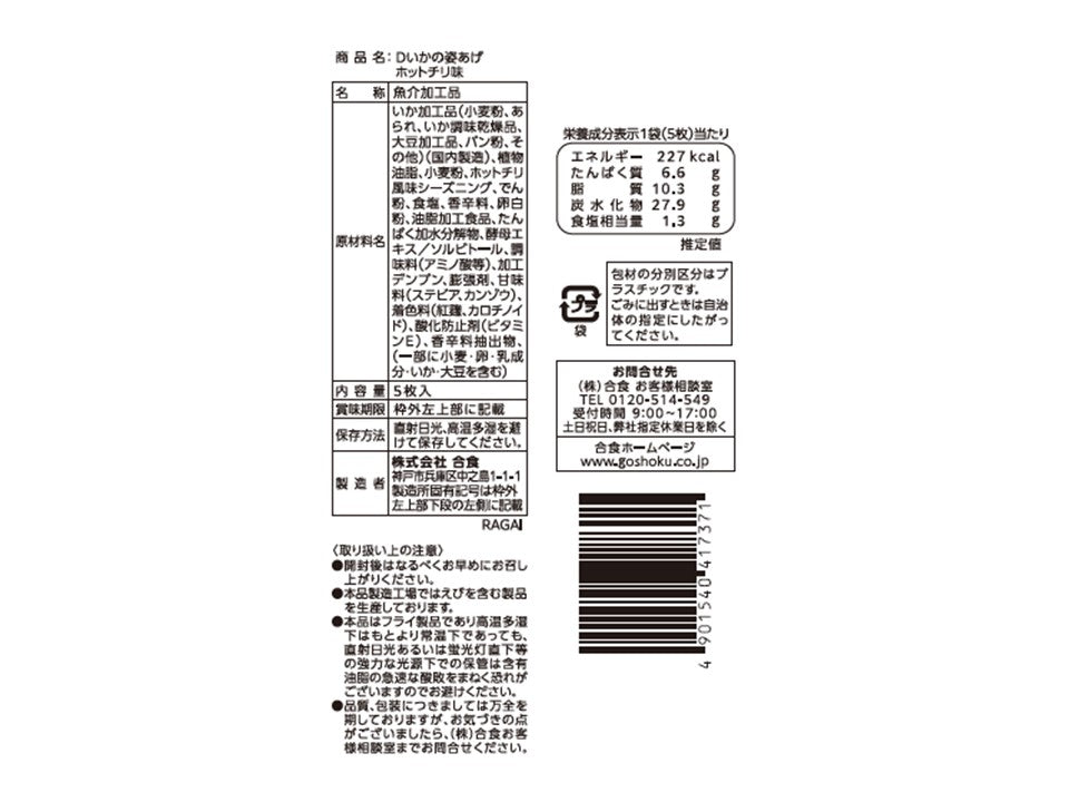 特徴:ロングセラーのいかの姿あげを「チリ味」にしました。