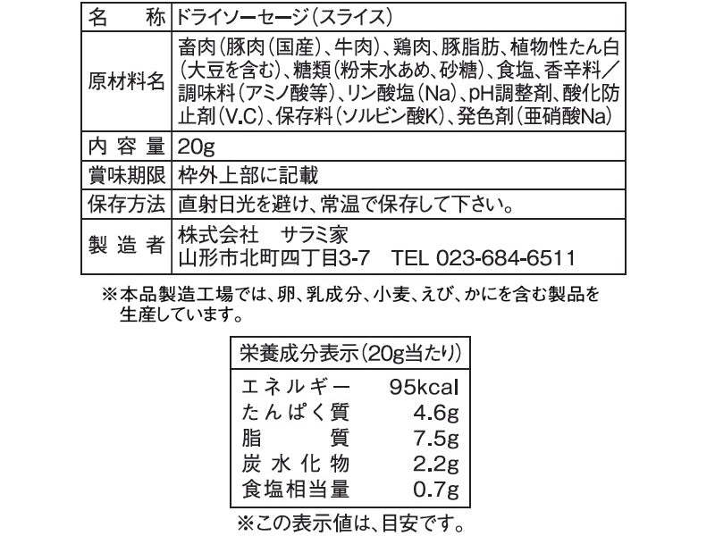 特徴:ひと口サイズにスライスし食べやすくしたカルパス。