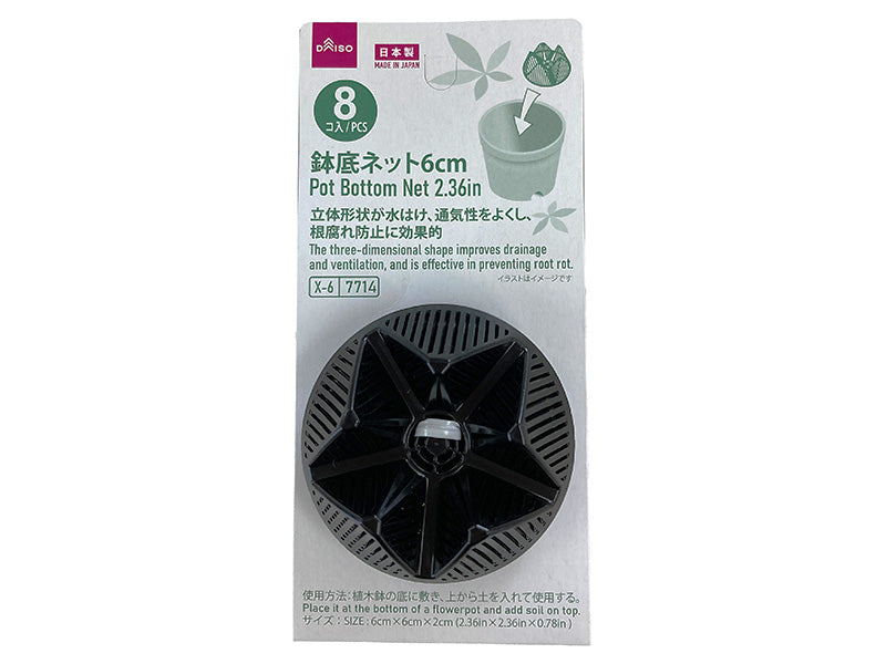 立体形状が水はけ、通気性をよくし、根腐れ防止に効果的 立体形状の鉢底ネット 植木鉢の底に敷き、上から土を入れて使用する。●直射日光・高温多湿の場所を避けて、保管してください。鉢の種類や形状によっては使用できない場合があります。●火や熱源のそばに置かない●用途外に使用しない