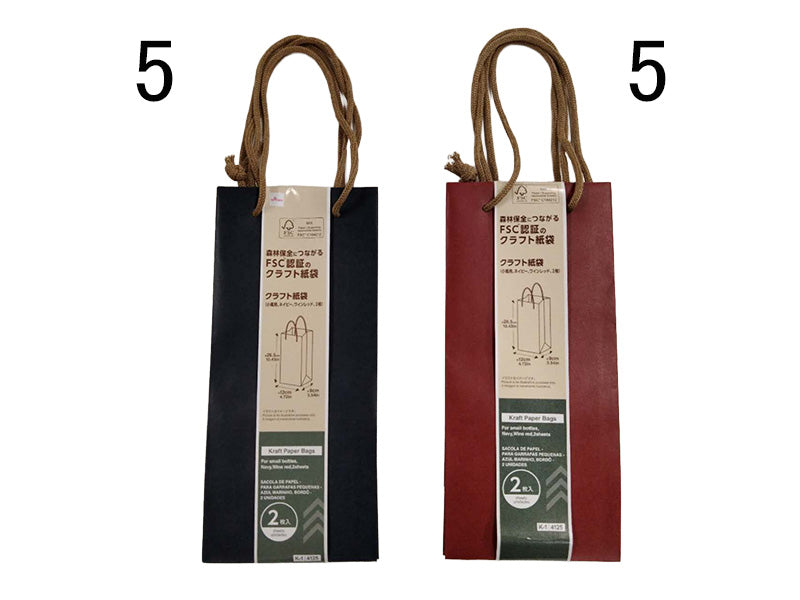 クラフト紙袋(小瓶用、ネイビー、ワインレッド、2枚)