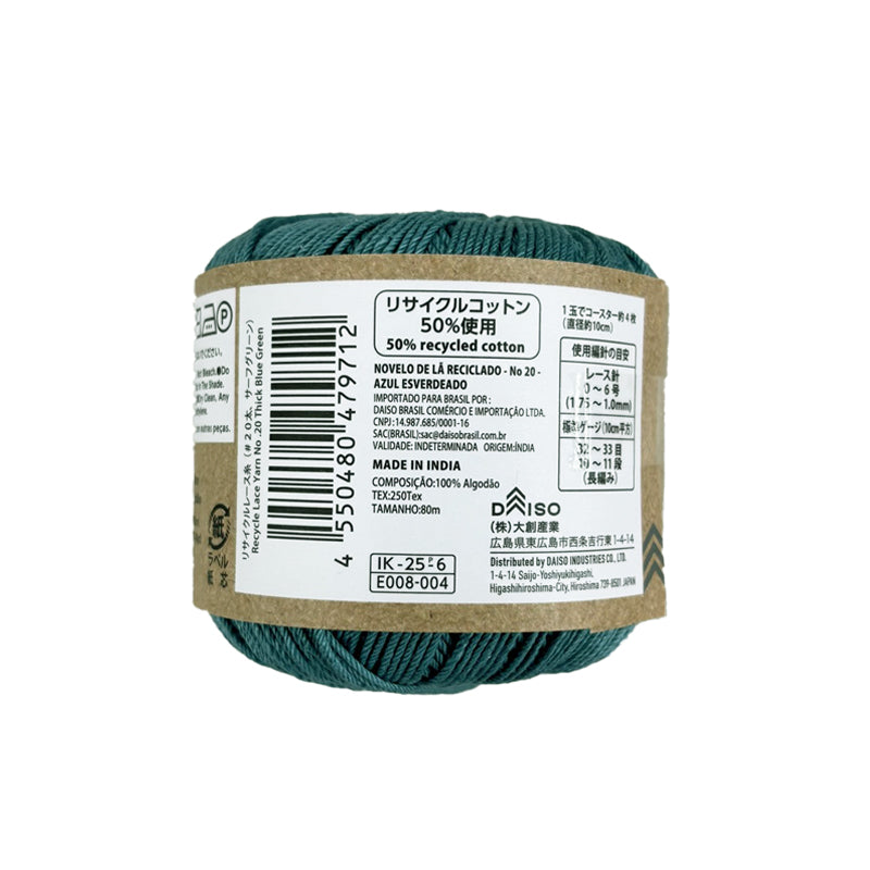 標準状態重量:約20g 約80mリサイクルコットン50%使用※写真はイメージです。使用編針の目安レース針 0-6号(1.75-1.0mm)標準ゲージ(10cm平方)32-33目10-11段(長編み)1玉でコースター約4枚(直径約10cm)他の製品と一緒に洗濯しないでください。LOT NO(ロット番号)について●製造工程上、糸の途中に結び目が発生する場合があります。●アイロンをする際は当て布をしてください。●ロット番号とは1釜の染色単位ごとの番号です。色番が同じでも、ロット番号が違うと色合いが違う場合があります。お買い求めの際は、ロット番号を確認し、同一のロット番号でのまとめ買いをお願いします。●本来の用途以外に使用しないでください。