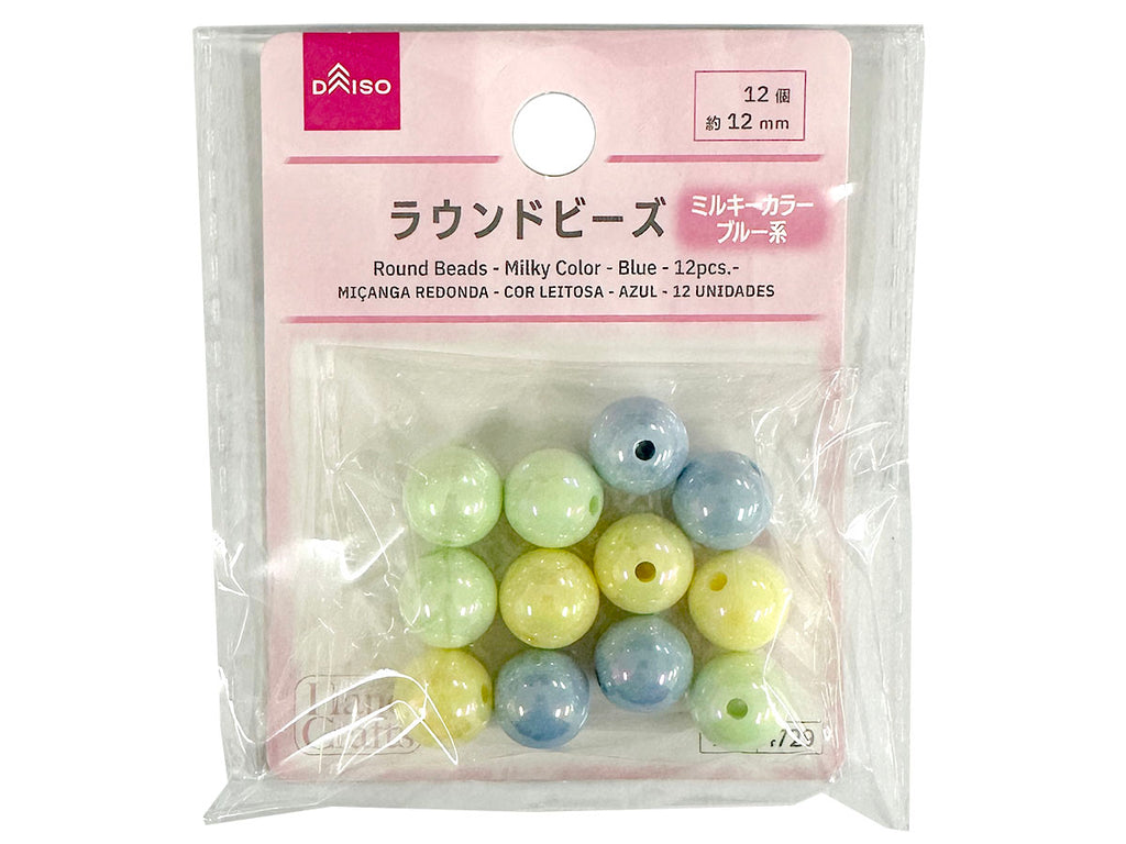 ラウンドビーズ(ミルキーカラー、ブルー系、12個)