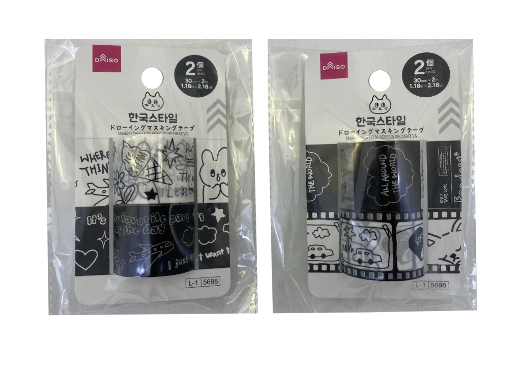 マスキングテープ(韓国スタイルドローイング、2個、ネコ)