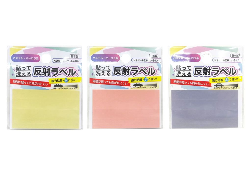 材質:反射材:ガラスビーズ、ラベル:ポリエステル 100%、粘着剤:アクリル系粘着剤