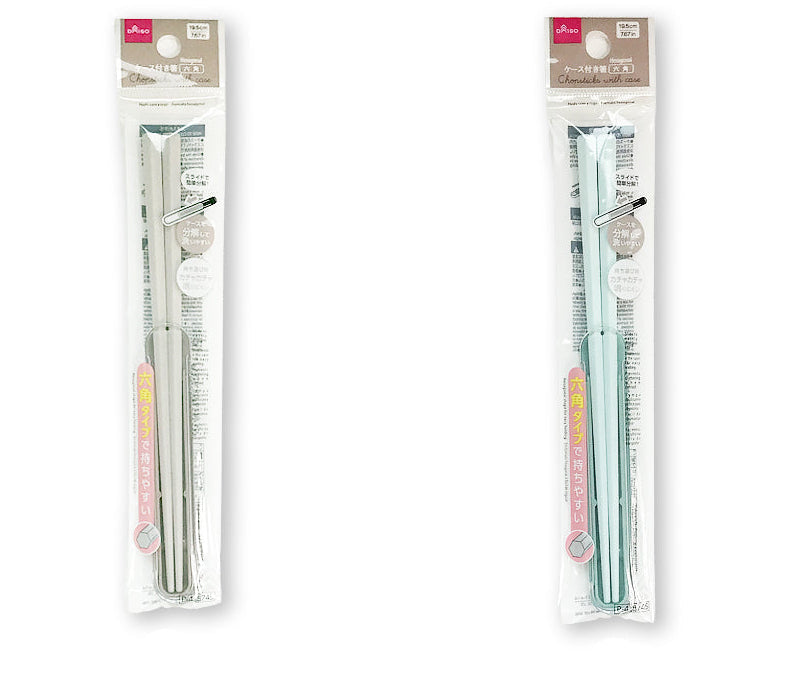 ケース付き箸 六角 スライドで簡単分解! ケースを分解して洗いやすい 持ち運び時カチャカチャ鳴りにくい 六角タイプで持ちやすい 19.5cm●イラストはイメージです。 ●耐熱温度:80℃ ●ケースの底面を、図のように開口部方向にスライドして分解してください。●使用後は食器用洗剤で洗い、乾燥させてください。●お子様の手の届かない場所に保管してください。●機能上先端が尖っています。取扱いに注意してください。●初回使用時は食器用洗剤で洗う●たわし・クレンザーは使用しない●食器洗い機・食器乾燥機不可●電子レンジ不可●火や熱源のそばに置かない●用途外に使用しない