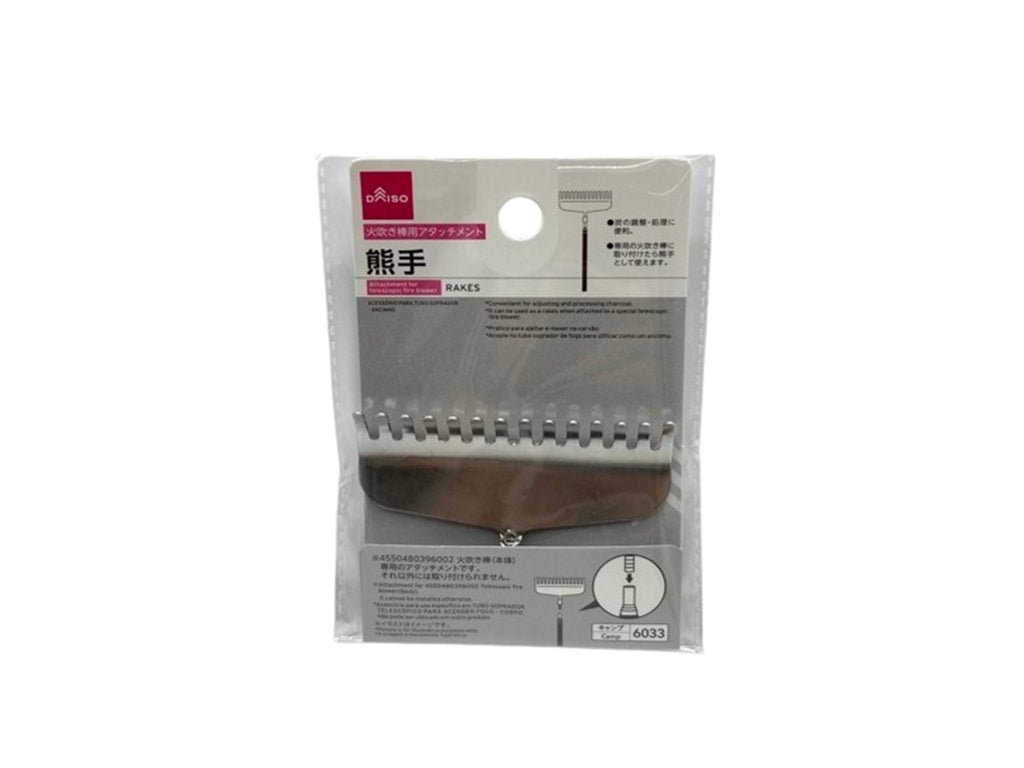専用の火吹き棒に取り付けたら熊手として使えます。 炭の調整・処理に便利。 ※4550480396002 火吹き棒(本体)専用のアタッチメントです。それ以外には取り付けられません。●異種金属と接触した状態で保管しないでください。●直射日光・高温多湿の場所を避けて、保管してください。●安全のため軍手や革手袋などを着用してお使いください。 ●使用中に異常があった場合は、直ちに使用を中止してください。 ●投げたり、振り回したりしないでください。●お子様の手の届かない場所で使用・保管してください。●分解や改造をしないでください。●変形・破損した場合、直ちに使用を中止してください。●本来の用途以外に使用しないでください。