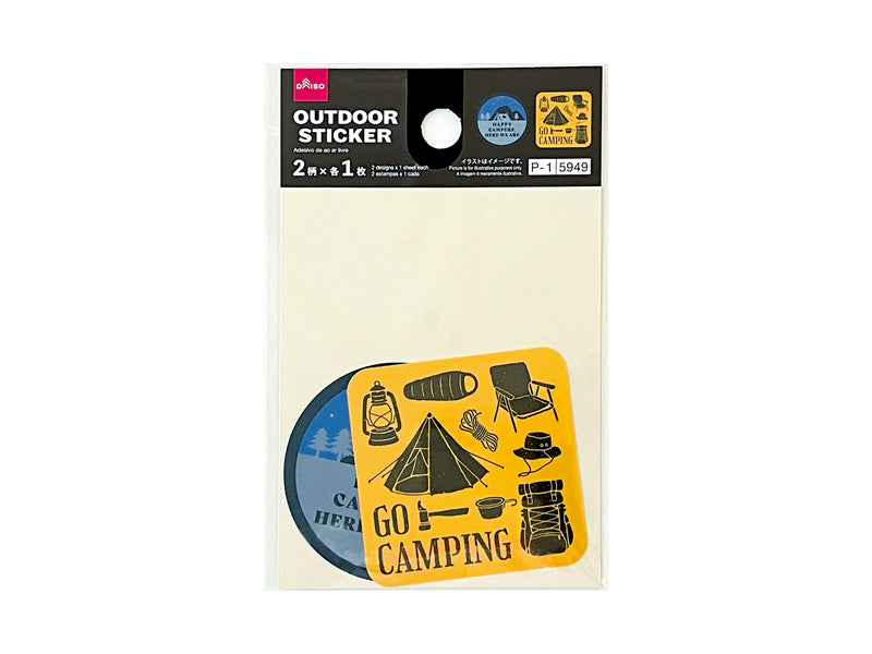 OUTDOOR STICKER 2柄×各1枚●イラストはイメージです。●口に入れたり肌に貼らないでください。●乳幼児の手の届かない場所で使用・保管してください。●直射日光・高温多湿の場所を避けて、使用・保管してください。●火や熱源のそばに置かないでください。●本来の用途以外に使用しないでください。●長期間他の製品と密着させないでください。可塑剤の影響で変質、色移りの恐れがあります。