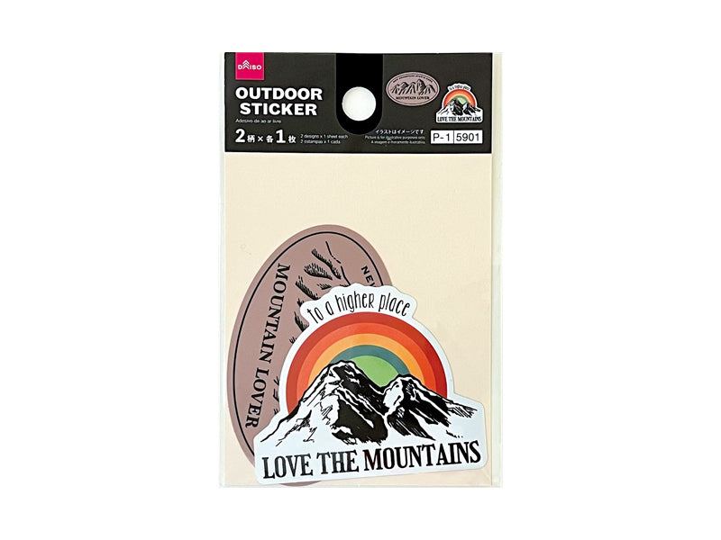 OUTDOOR STICKER 2柄×各1枚●イラストはイメージです。●口に入れたり肌に貼らないでください。●乳幼児の手の届かない場所で使用・保管してください。●直射日光・高温多湿の場所を避けて、使用・保管してください。●火や熱源のそばに置かないでください。●本来の用途以外に使用しないでください。●長期間他の製品と密着させないでください。可塑剤の影響で変質、色移りの恐れがあります。