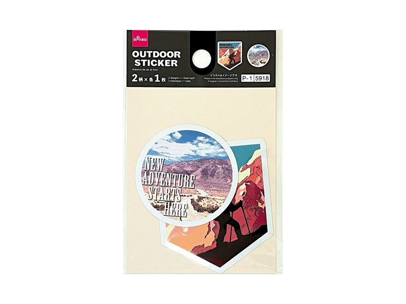 OUTDOOR STICKER 2柄×各1枚●イラストはイメージです。●口に入れたり肌に貼らないでください。●乳幼児の手の届かない場所で使用・保管してください。●直射日光・高温多湿の場所を避けて、使用・保管してください。●火や熱源のそばに置かないでください。●本来の用途以外に使用しないでください。●長期間他の製品と密着させないでください。可塑剤の影響で変質、色移りの恐れがあります。