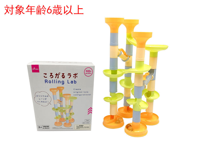 1.パーツを組み立てます。 2.一番上の入口に玉を置くと、スロープを流れて下まで落ちます。●乳幼児の手の届かない場所に保管してください。●保護者の方へ、必ずお読みください。●本品を使用する際は、保護者監督のもと使用してください。●小部品があります。誤飲・窒息の危険がありますので、3才未満のお子様へは絶対に与えないでください。●周囲の安全を確認した上で使用してください。●分解や改造をしないでください。●投げたり、振り回したりしないでください。●変形・破損した場合、直ちに使用を中止してください。●本来の用途以外に使用しないでください。