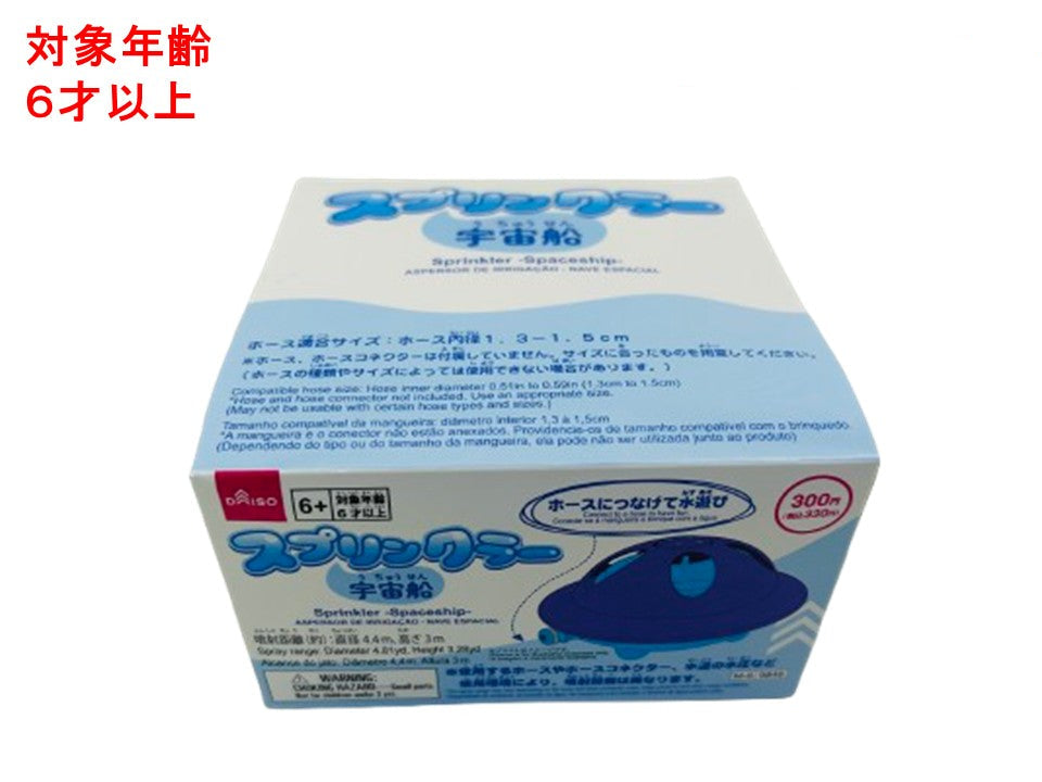 楽しく遊ぼう!ホースにつなげて水遊び ※使用するホースやホースコネクター、水道の水圧など使用環境により、噴射距離は異なります。噴射距離(約):直径4.4m、高さ3m ホース適合サイズ:ホース内径1.3ー1.5cm ※ホース、ホースコネクターは付属していません。サイズに合ったものを用意してください。(ホースの種類やサイズによっては使用できない場合があります。)対象年齢6才以上 ①本品に市販のホースコネクター(別売)を接続したホース(別売)を取り付けます。②水道から水を出すと上部が回転しながら水が噴射されます。※ホースがしっかり取り付けられていることを確認し、水漏れなどがないことを確認してから使用してください。※広範囲に水が噴射されますので、水がかかっても問題のない場所で使用してください。●使用後は水気や汚れを拭き取り、乾燥させてから保管してください。●直射日光・高温多湿の場所を避けて、保管してください。●乳幼児の手の届かない場所に保管してください。●人の顔や動物に向けて使用しないでください。 ●水以外のものを通さないでください。 ●お湯など熱いものを通さないでください。●保護者の方へ、必ずお読みください。●小部品があります。誤飲・窒息の危険がありますので、3才未満のお子様へは絶対に与えないでください。●子供の一人遊びは危険です。必ず保護者のもとで遊ばせてください。●本品を使用する際は、保護者監督のもと使用してください。●周囲の安全を確認した上で使用してください。●屋内で使用しないでください。●平らな場所で使用してください。●可動部分に指や髪の毛などを挟んだりしないよう、注意してください。●屋外に放置しないでください。●濡れたまま放置しないでください。●落としたり、ぶつけたりしないでください。●分解や改造をしないでください。●変形・破損した場合、直ちに使用を中止してください。●火や熱源のそばに置かないでください。●本来の用途以外に使用しないでください。