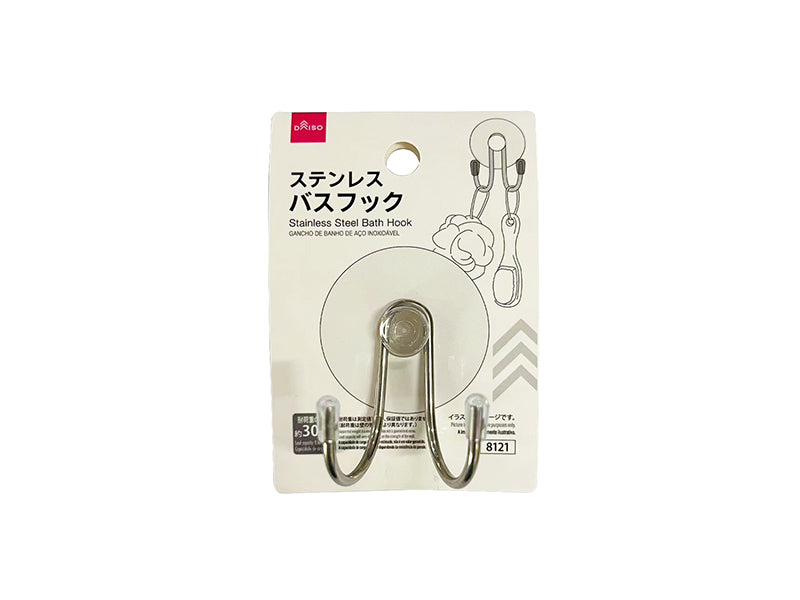 耐荷重の目安:約300g 耐荷重は測定値であり、保証値ではありません。 (耐荷重は壁の強度により異なります。) ステンレスはサビない材質ではありません。時間の経過・使用状況によりサビる場合もあります。●イラストはイメージです。吸盤より大きく凹凸のない平らな面に取り付けてください。 取り付け面と吸着面のホコリ、油分、水分を拭き取ってから使用してください。 取り付け面に密着するように吸盤の中心を強く押し付けて、中の空気を抜いて取り付けてください。 吸盤が十分に密着しているか確認してから使用してください。 吸盤は長時間使用すると、徐々に空気が入り込んで外れやすくなります。時々吸盤を押して空気を抜くようにしてください。 タイルに取り付ける場合、目地にかからないよう位置を確認してください。●使用後は水気をよく切り、乾燥させてください。●異種金属と接触した状態で保管しないでください。長時間の使用により、吸着面に色の差が生じる場合があります。●製品の特性上フチなどは鋭くなっています。取り扱いの際は十分注意してください。●平らな面に取付けてください。●あとが残っても差し支えない場所で使用してください。●貴重品や壊れやすいものをかけないでください。●たわし、又はクレンザーは使用しないでください。●取り付けた場所の下に、壊れやすいものや貴重品を置かないでください。●直射日光・高温の場所を避けて、使用・保管してください。●乳幼児の手の届かない場所で使用・保管してください。●変形・破損した場合、直ちに使用を中止してください。●火や熱源のそばに置かないでください。●本来の用途以外に使用しないでください。