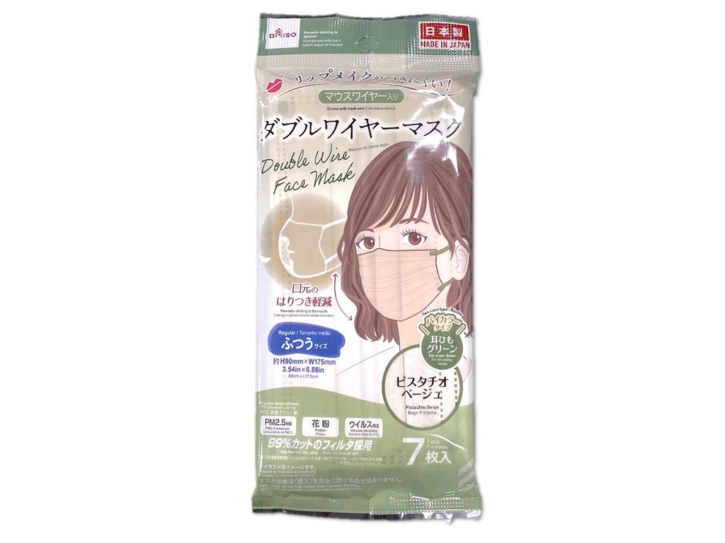 リップメイクがつきにくい! マウスワイヤー入り 口元のはりつき軽減 耳ひも:グリーンPM2.5対策(PFE:微粒子カット率) 花粉 ウイルス飛沫 99%カットのフィルタ採用 マスクは感染(侵入)を完全に防ぐものではありません。 花粉(花粉捕集効率試験) ウイルス飛沫(VFE試験) 微粒子(PFE試験) バクテリア飛沫(BFE試験) 一般財団法人カケンテストセンター ※イラストはイメージです。バイカラータイプ プリーツ加工で息苦しさを軽減。 口元に空間ができ快適に呼吸ができます。①マスクを顔に当てて、ノーズフィッターを鼻の形に合わせます。 耳ひもの接着部のある面が外側です。 ②形が決まりましたら、マスクを手で押さえながらゴムを耳にかけます。 ③鼻からアゴまでマスクで隠れるよう、プリーツ(折りひだ)を上下に広げます。 マウスワイヤーの形を整え、口元に空間をつくります。-●直射日光・高温多湿の場所を避けて、保管してください。●乳幼児の手の届かない場所に保管してください。●眼鏡が曇る場合があります。運転の際などは十分注意してください。 ●マスクの着け外し時や廃棄時など、ノーズフィッターやマウスワイヤーを折り曲げる際に手指を傷つけないよう注意してください。 ●睡眠時は使用しないでください。●肌に異常がある場合は、使用しないでください。●臭いで気分が悪くなった場合は使用を中止してください。●刺激、異常を感じた場合は、直ちに使用を中止し、医師に相談してください。●有毒ガスや有毒粉じんが発生する場所で使用しないでください。●火や熱源のそばに置かないでください。