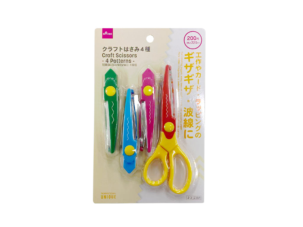 工作やカード・ラッピングのギザギザ・波線に●イラストはイメージです。サイズ 全長:16.8cm 刃渡り:6.7cm 適しているもの:紙など 刃を開き、取っ手を矢印方向へ引っ張って取外し、付け替えます。刃を交換する際は手を切らないよう取り扱いに十分注意してください。 ハンドルの間に指等を挟んだり刃先でケガをしないよう取扱いには十分ご注意ください。●お子様の手の届かない場所で使用・保管してください。●刃に触れないでください。●ダンボールや厚紙など硬いものに使用しないでください。●濡れたまま放置しないでください。●落としたり、ぶつけたりしないでください。●変形・破損した場合、直ちに使用を中止してください。●本来の用途以外に使用しないでください。