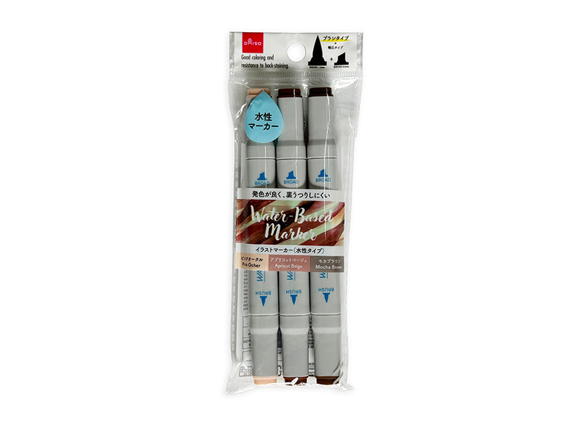 水性イラストマーカー(ナチュラルカラー、筆芯タイプ、3本)