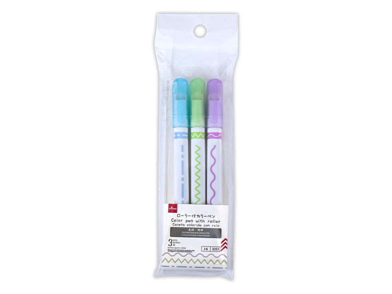 ローラー付カラーペン(点線、波線、3本)