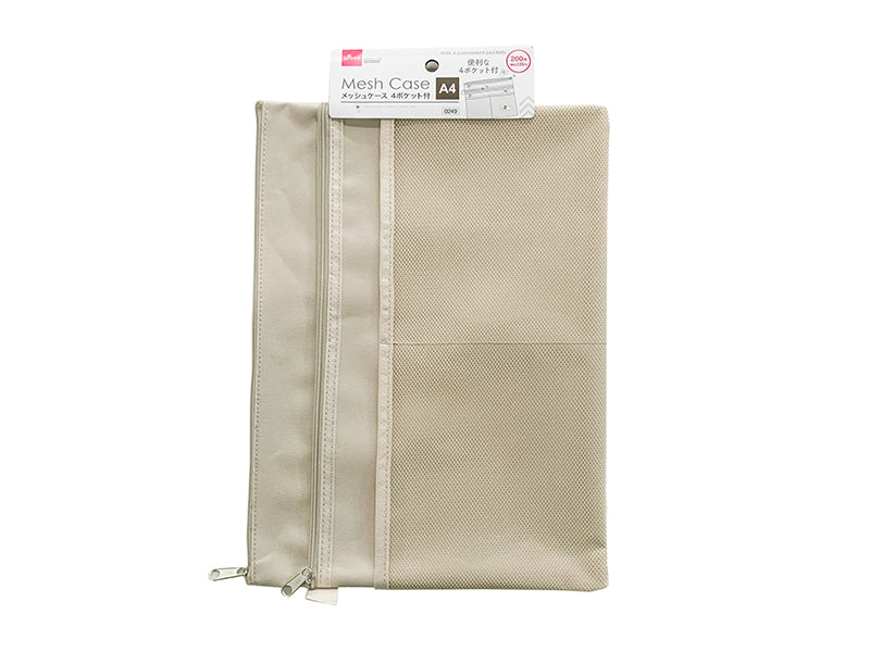 便利な4ポケット付 嬉しい収納力! チャック付きポケット×2 中身が見えるメッシュポケット×2●洗濯しないでください。●尖ったものや鋭利なものを入れないでください。●重いものを入れたり、詰めすぎたりしないでください。●変形・破損した場合、直ちに使用を中止してください。●火や熱源のそばに置かないでください。●本来の用途以外に使用しないでください。●長期間他の製品と密着させないでください。可塑剤の影響で変質、色移りの恐れがあります。