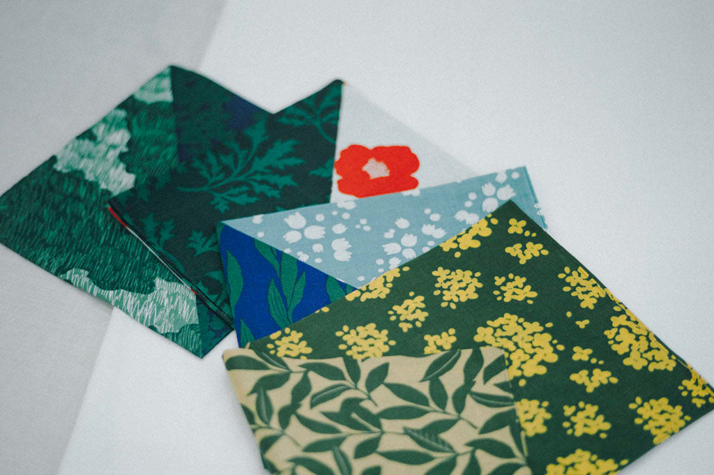 高精細な印刷表現でつくる日本の草花柄のハンカチ