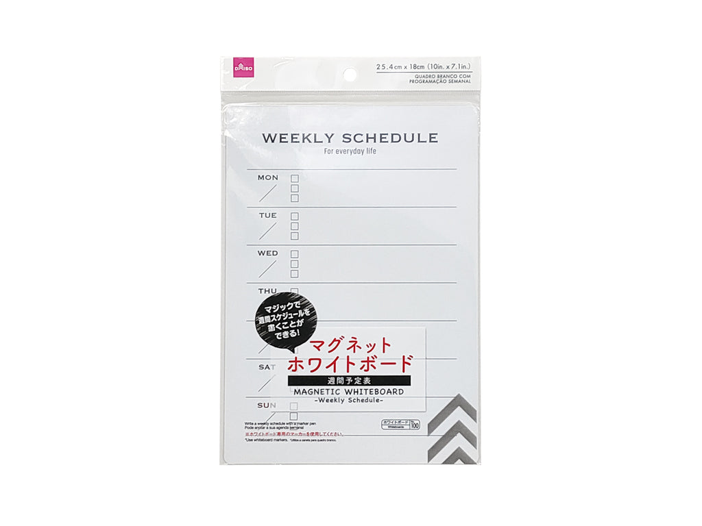 マジックで週間スケジュールを書くことができる汚れたり、文字が消えにくくなった場合は、水を含ませた布などでふき取ってください●字を書いたまま長時間放置しないでください。字が消えにくくなる可能性があります。●ホワイトボード専用のマーカーを使用してください。●磁気に影響を受けるものに近づけないでください。●直射日光・高温多湿の場所を避けて、使用・保管してください。●お子様の手の届かない場所で使用・保管してください。●火や熱源のそばに置かないでください。●本来の用途以外に使用しないでください。