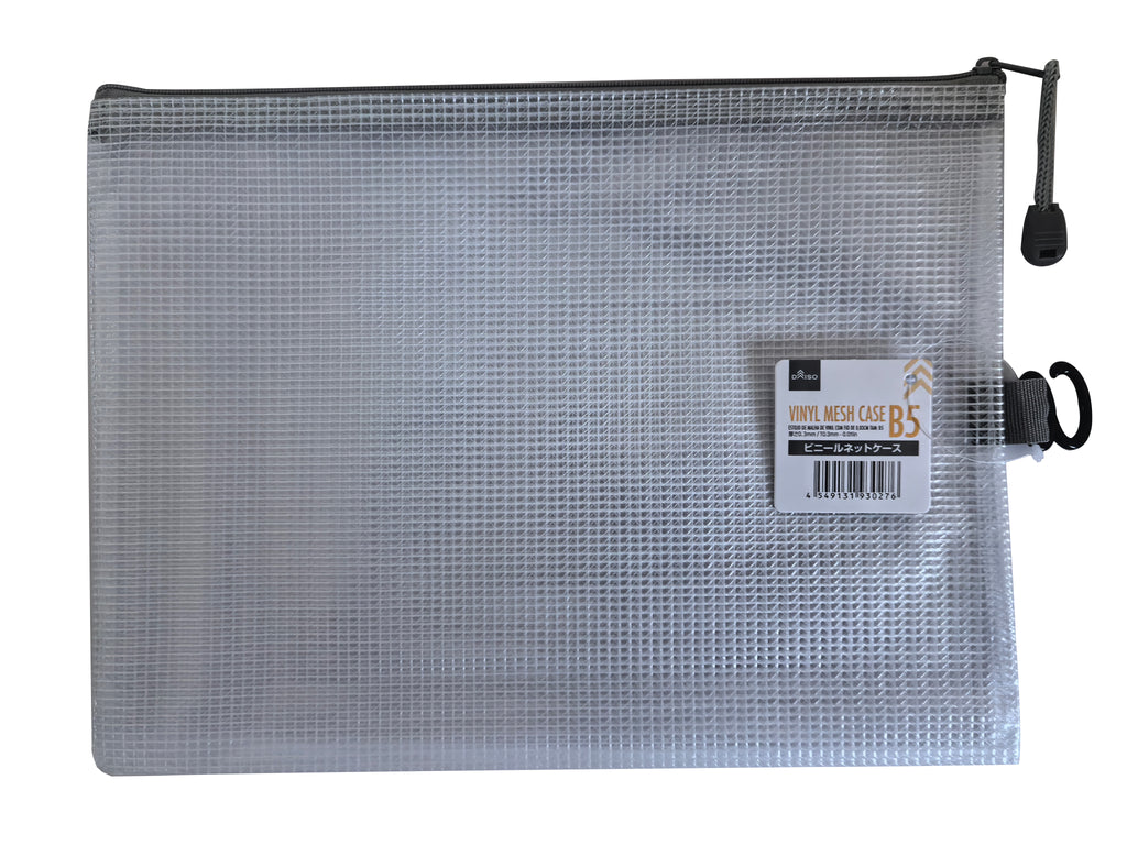 ビニールネットケースB5(厚さ:0.3 mm)事務用収納●尖ったものや鋭利なものを入れないでください、 ●重いものを入れたり、詰めすぎたりしないでください、●強く引っ張らないでください、●長期間他の製品と密着させないでください、 ●火や熱源のそばに置かないでください、●お子様の手の届かない場所に保管してください
