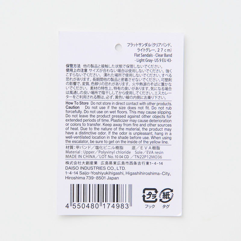 サイズ 約27cm他の製品と接触した状態で保管しないでください。サイズが合わない場合は使用しないでください。 強くこすらないでください。 濡れた場所で使用しないでください。すべる恐れがあります。 長時間他の製品と密着させないでください。可塑剤の影響で変質、色移りの恐れがあります。 火や熱源のそばに置かないでください。 素材の特性上、特有の臭いがあります。 気になる場合は風通しの良い場所で陰干ししてから使用してください。 エスカレーターをご利用される際は、必ず、黄色い線の内側にお乗りください。