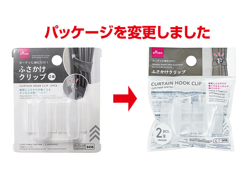 カーテンに挟むだけ!壁面にふさかけが無くてもタッセルが掛けられる!1、本品をカーテン生地に差し込みます。 ※カーテン生地を傷めないように注意して取り付けてください。 2、フック部分に、タッセルを掛けます。 3、カーテンをまとめる時は、タッセルの両端をフック部分に掛けます。カーテンの生地や、タッセルの形状によっては使用できない場合があります。 取り付け時や取り外しの際に生地を傷めないように注意してください。 サイズが合わない場合は使用しないでください。 カーテンを洗濯する際は必ず本品を外してください。 貴重品や壊れやすいものを掛けないでください。 お子様の手の届かない場所で使用・保管してください。 火や熱源のそばに置かないでください。 本来の用途以外に使用しないでください。
