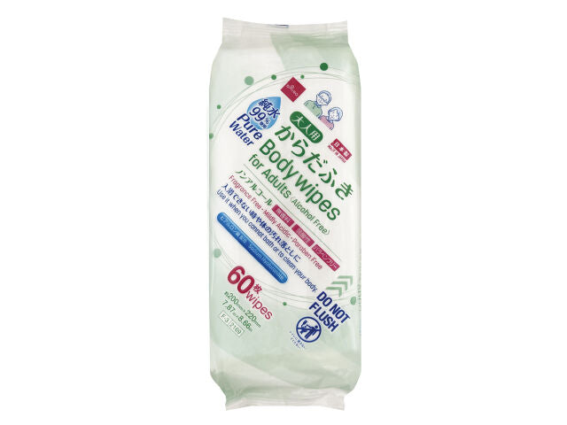 ノンアルコール 無香料 純水99%使用 入浴できない時や、体の汚れ落としにご使用ください。 弱酸性 パラベンフリー●入浴できない時のからだの汚れが気になる時に便利で簡単に取り出せるウェットティッシュです。 ●病気や怪我、災害時などのお風呂に入れない時のからだ拭きに。 ●スポーツやレジャー、アウトドアでの汗拭きに。 ●介護用として●薬液の99%が純水でできた水に近いウェットティッシュです。 ●人の肌の性質と同じ弱酸性。デリケートなお肌もやさしく拭けます。 ●ふんわりとソフトなお肌にやさしいウェットティッシュです。●パッケージ表面のオープンラベルをめくり、1枚ずつシートを取り出します。 ●使用後は、オープンラベルをしっかりと閉めてください。●お子様の手の届かない場所で使用・保管してください。 ●直射日光・高温多湿の場所を避けて、使用・保管してください。●本品は水に溶けません。トイレに流さないでください。 ●目、粘膜、傷口に使用しないでください。 ●傷やはれもの、湿疹などのある部分には使用しないでください。 ●肌に異常があるときや、肌にあわないときは使用を中止してください。 ●シートを誤って口に入れたり、喉に詰まらせたりすることがないように保管にご配慮ください。●温めるとティッシュが変色する場合がありますが、品質には問題はありません。 ●使用後は乾燥を防ぐために、しっかりオープンラベルを閉め、早めに使用してください。 ●火や熱源のそばに置かないでください。