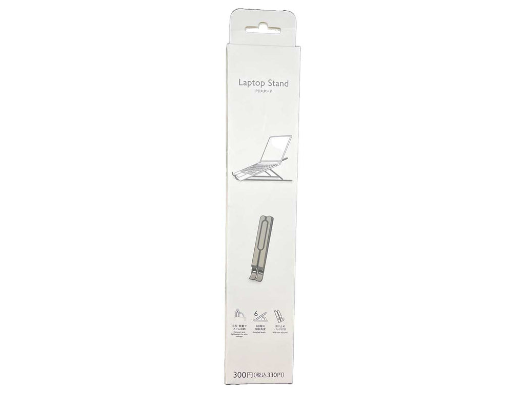 小型・軽量でスリム収納 6段階の傾斜角度 滑り止めパッド付きノートPCの熱対策 目線UPでPC作業時の姿勢改善をアシスト タイピングしやすい6段階の傾斜角度調節で快適なPC作業使用時サイズ:19.4cm×25.8cm×高さ最小8.2cmー高さ最大15cm 本体重量:100g 耐荷重:約 10kgまで 対応サイズ:15.6インチまでのノート型パソコン 6段階角度調節式(約 25°/30°/33°/36°/38°/42°)1 折りたたまれた状態の本体脚部分を左右にしっかり開いてください。 2 上部に連接している脚を取り出し、立ち上げてください。 3 取りだした脚を角度調節用穴に差しこみ、お好みの角度に調節してください。 ※角度調節用穴の位置は、左右で同じ位置にしてください。左右の位置が異なると、片方に荷重がかかり、スタンドが破損する恐れがあります。 4 適切な角度に脚を固定し、しっかり差しこまれていることを確認後、ノートパソコンやタブレットを置いてください。 各部名称 脚 角度調節用穴汚れた場合は乾いた布で拭き取ってください。 ベンジン・シンナー・アルコールなど揮発性有機溶剤が含まれるものやメラミンスポンジを使わないでください。直射日光・高温の場所を避けて、保管してください。 乳幼児の手の届かない場所に保管してください。 長時間、炎天下の車内へ放置しないでください。変形・変色の恐れがあります。使用する前にキズ、破損、劣化を確認してください。異常がある場合は使用しないでください。 本品にパソコンやタブレットなど機器を載せたまま移動しないでください。機器の落下や転倒など、思わぬ事故につながる恐れがあります。 耐荷重以上の物を載せないでください。 耐荷重内でも重量が一か所に偏ったり、一気に重量をかけないようにしてください。 不安定な場所で使用しないでください。 本品にPCを載せたまま内蔵CD/DVDドライブを使用する場合、十分注意してください。ドライブトレイが引き出せない、ディスクにキズが入る、正常な読み込み・書き込みができないことがあります。 本品の滑り止めパッドを剥がしたり、はがれた状態で使用しないでください。 本品の組み立てや折りたたみ時に手や指・髪の毛・衣類などを挟まないよう十分注意してください。 分解や改造をしないでください。 投げたり、振り回したりしないでください。 無理な力や強い衝撃を与えないでください。 変形・破損した場合、直ちに使用を中止してください。 火や熱源のそばに置かないでください。 本来の用途以外に使用しないでください。 本品の使用においてデータの破壊または消失が発生した場合、原因や損害の内容に関わらず、当社は一切責任を負いません。事前にデータをバックアップすることをお勧め致します。(日本語のみ) ※生産に万全を期しておりますが、万一不良の場合にはお買い上げ店にてお取り替えさせていただきます。本品使用目的以外の使用に起因するなど、本品の欠陥に基づかない損害については弊社では責任を負いかねます。あらかじめご了承の上お買い求めください。(日本語のみ) ※仕様および外観などは商品改良のため予告なしに変更することがあります。 ※パッケージに記載の社名および製品名は各社の商標または登録商標になります。 ※写真・イラストはイメージです。