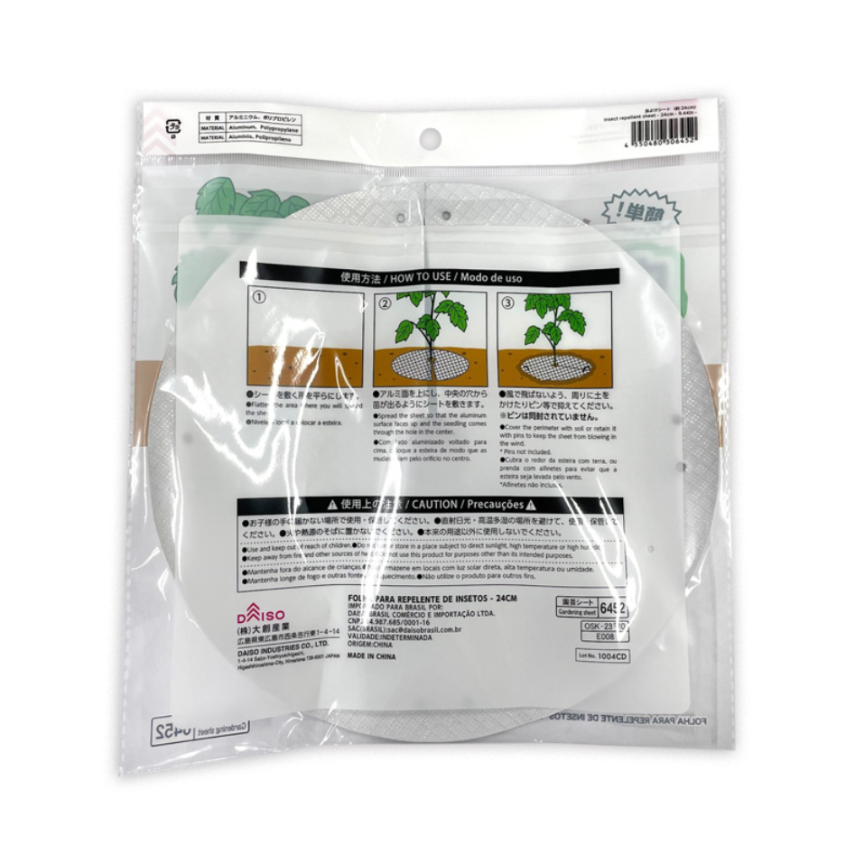 アルミ面を上にし、中央の穴から苗が出るようにシートを敷きます。