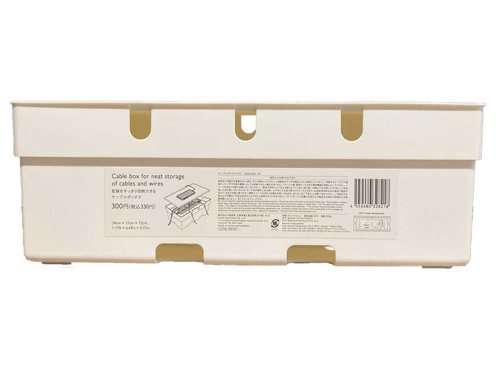 配線をすっきり収納できるケーブルボックス●イラストはイメージです。使用前に同梱の注意書きをよく読み、正しく使用してください。※生産に万全を期しておりますが、万一不良の場合にはお買い上げ店にてお取り替えさせていただきます。本品使用目的以外の使用に起因するなど、本品の欠陥に基づかない損害については当社では責任を負いかねます。あらかじめご了承の上お買い求めください。※商品の仕様および外観などは商品改良のため予告なく変更することがあります。※パッケージに記載の社名および製品名は各社の商標または登録商標になります。廃棄の際は、各地方自治体の廃棄区分に従ってください。材質:ポリプロピレン耐熱温度:80℃重量:388g外寸:W34cm×D17cm×H12cm内寸:W31.5cm×D14.5cm×H11.5cm。収納物のサイズを確認してから使用してください。収納するケーブルや電源タップ、アダプタ等の種類によっては収納できない場合があります。無理に押し込まないでください。●柔らかい布で汚れを拭き取ってください。本品の上に乗ったり、重いものを載せないでください。本品は立てて使用しないでください。耐熱温度の範囲内で使用してください。水のかかる可能性のある場所や水場・湿気のある場所で使用しないでください。ケーブル類・電源タップ以外の電気機器を収納しないでください。コードを束ねた状態で収納しないでください。本品底面の通気孔をふさがないよう使用してください。ホコリが溜まると発熱、発火の原因となるため定期的に掃除を行ってください。●変形・破損した場合、直ちに使用を中止してください。●乳幼児の手の届かない場所で使用・保管してください。●屋外で使用しないでください。●平らな場所で使用してください。●火や熱源のそばに置かないでください。●シンナー、ベンジン、アルコール等は付着させないでください。●直射日光・高温多湿の場所を避けて、使用・保管してください。●製品の特性上フチなどは鋭くなっています。取り扱いの際は十分注意してください。