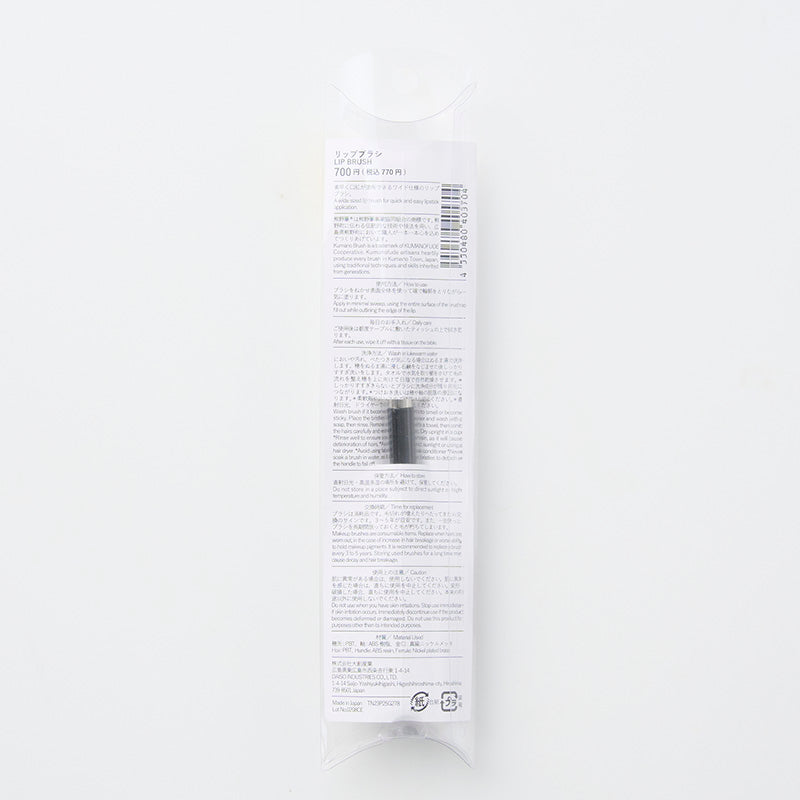 素早く口紅が塗布できるワイド仕様のリップブラシ。リップ熊野筆は熊野筆事業協同組合の商標です。熊野町に伝わる伝統的な技術や技法を用い、広島県熊野町において職人が一本一本心を込めてつくりあげています。ブラシをねかせ表面全体を使って端で輪郭をとりながら一気に塗ります。 【毎日のお手入れ】ご使用後は都度テーブルに敷いたティッシュの上で拭き取ります。 【洗浄方法】においや汚れ、べたつきが気になる場合はぬるま湯で洗浄します。 穂をぬるま湯に浸し石鹸をなじませた後しっかりすすぎ洗いをします。 タオルで水気を取り櫛をかけて毛の流れを整え穂を上に向けて日陰で自然乾燥させます。 *しっかりすすぎきらないとブラシに洗浄成分が残り劣化につながります。 *つけおき洗いは穂や軸の脱落の原因になります。 *柔軟剤やリンスのご使用はお控えください。 *直射日光、ドライヤーでの乾燥はお控えください。●直射日光・高温多湿の場所を避けて、保管してください。【交換時期】ブラシは消耗品です。毛切れが増えたりへたってきたら交換のサインです。 3-5年が目安です。また、一旦使ったブラシを長期間放っておくと毛が朽ちてしまいます。 【使用上の注意】●肌に異常がある場合は、使用しないでください。●肌に異常を感じた場合は、直ちに使用を中止してください。●変形・破損した場合、直ちに使用を中止してください。●本来の用途以外に使用しないでください。