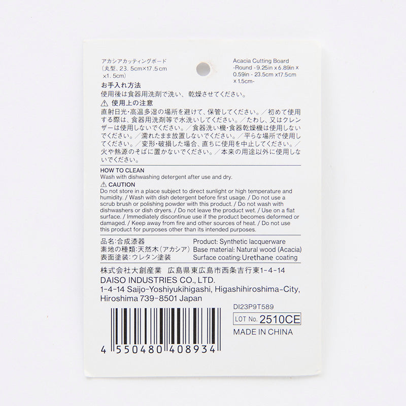 品名:合成漆器 素地の種類:天然木(アカシア) 表面塗装:ウレタン塗装●使用後は食器用洗剤で洗い、乾燥させてください。●直射日光・高温多湿の場所を避けて、保管してください。●初めて使用する際は、食器用洗剤等で水洗いしてください。●たわし、又はクレンザーは使用しないでください。●食器洗い機・食器乾燥機は使用しないでください。●濡れたまま放置しないでください。●平らな場所で使用してください。●変形・破損した場合、直ちに使用を中止してください。●火や熱源のそばに置かないでください。●本来の用途以外に使用しないでください。