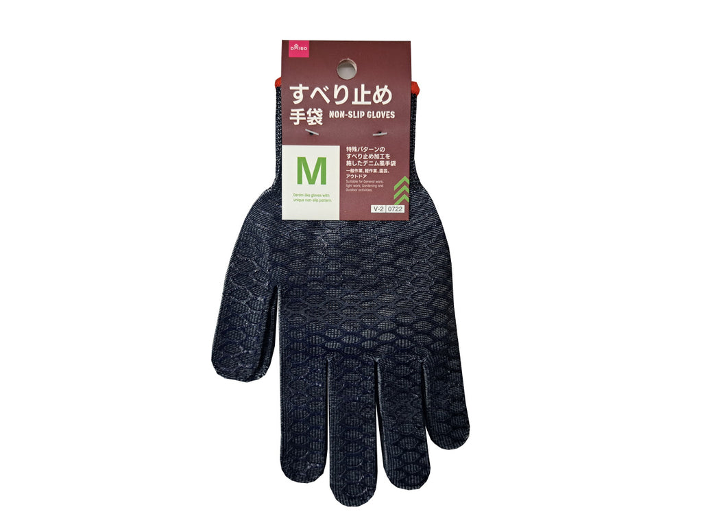 特殊パターンのすべり止め加工を施したデニム風手袋 一般作業、軽作業、園芸、アウトドア 全長:22.0cm手のひら幅:9.5cm中指の長さ:7.8cm 手にはめてお使いください●使用後は水洗いしてください。●陰干ししてください。●塩素系洗剤・漂白剤は、使用しないでください。●直射日光の当たる場所を避けて、保管してください。●肌に異常がある場合は、使用しないでください。●肌に異常を感じた場合は、直ちに使用を中止してください。●ボール盤や面取り盤など回転部分を伴う機械での作業に使用しないでください。●薬品、溶剤、油類を扱う作業に使用しないでください。●電気作業に使用しないでください。●高温のものに触れないでください。●火や熱源のそばに置かないでください。●長期間他の製品と密着させないでください。可塑剤の影響で変質、色移りの恐れがあります。