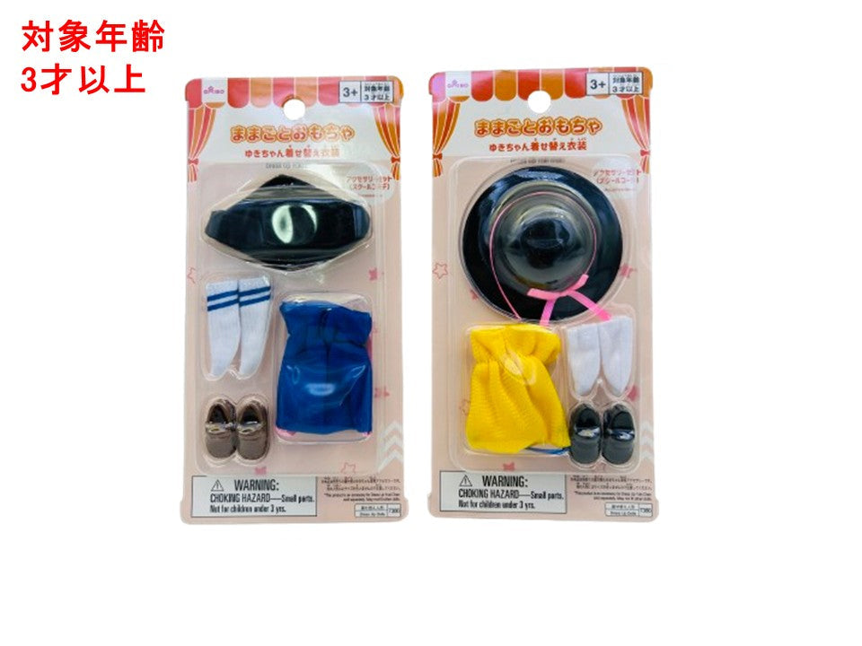 ままごとおもちゃ着せ替えゆきちゃん※本品は別売りの着せ替えゆきちゃん専用アクセサリーです。他の人形にはサイズが合いませんので注意してください。対象年齢3才以上、コーディネートしてみよう!コーディネート完成イメージ※人形は別売りです。●写真はイメージです。セット内容、帽子、バッグ、くつ下、くつ●汚れた場合は、水またはお湯で薄めた中性洗剤で拭き取ってください。●直射日光・高温多湿の場所を避けて、保管してください。●乳幼児の手の届かない場所に保管してください。●保護者の方へ、必ずお読みください。●小部品があります。誤飲・窒息の危険がありますので、3才未満のお子様へは絶対に与えないでください。●本品を使用する際は、保護者監督のもと使用してください。●周囲の安全を確認した上で使用してください。●指に巻き付けないでください。●強く引っ張らないでください。●強く押したり、無理に折り曲げたりしないでください。●無理に力を入れて着せ替えしないでください。●水で濡らさないでください。●変形・破損した場合、直ちに使用を中止してください。●火や熱源のそばに置かないでください。●本来の用途以外に使用しないでください。