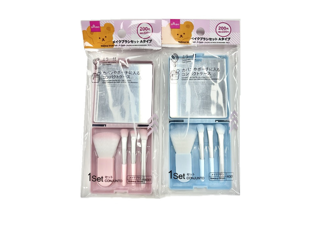 商品サイズ:ケース(閉じた状態のサイズ):7×7.7×2.3cm ブラシ①(フェイスブラシ):3×6×0.7cm ブラシ②(アイメイクブラシ):1×6.6×0.6cm ブラシ③(アイメイクブラシ):0.7×6.2×0.5cm ブラシ④(アイメイクブラシ):1.2×6.7×0.6cm