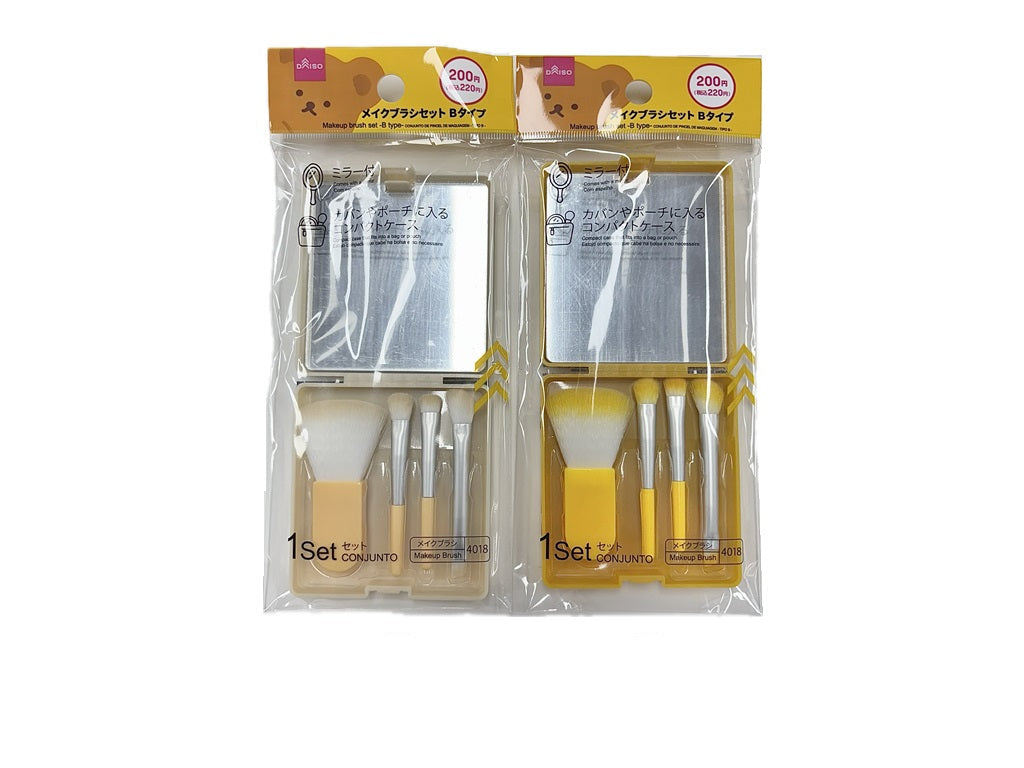 商品サイズ:ケース(閉じた状態のサイズ):7×7.7×2.3cm ブラシ①(フェイスブラシ):3×6×0.7cm ブラシ②(アイメイクブラシ):1×6.6×0.6cm ブラシ③(アイメイクブラシ):0.7×6.2×0.5cm ブラシ④(アイメイクブラシ):1.2×6.7×0.6cm