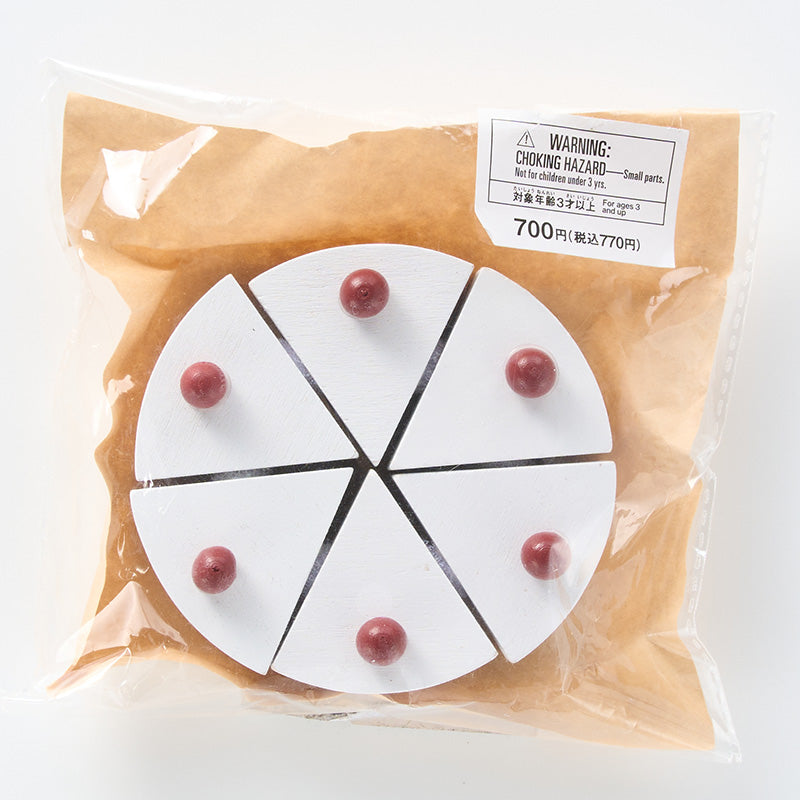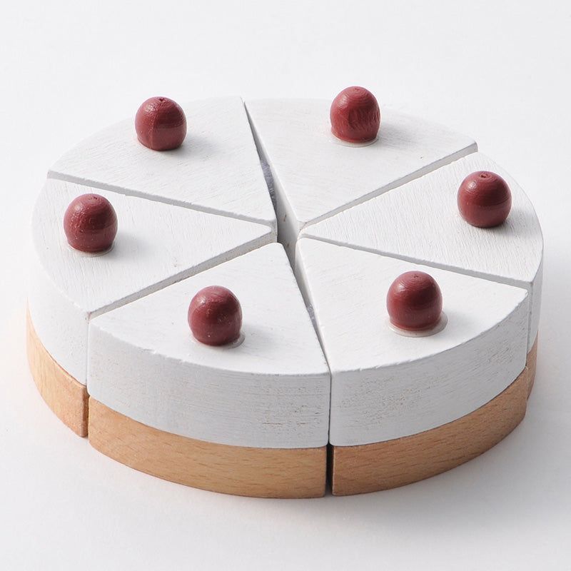 木製でシンプルなデザインです。 ケーキを6切れに切り分けることができます。 対象年齢3歳以上 おままごととしてマジックテープ部分を切ったりくっつけたりして遊びます。●直射日光・高温多湿の場所を避けて、保管してください。●警告● 保護者の方へ、必ずお読みください。●小部品があります。誤飲・窒息の危険がありますので、3才未満のお子様へは絶対に与えないでください。●食べ物ではありません。絶対に口に入れないでください。●天然素材のため、歪み・曲がり・割れが発生する場合があります。●水で濡らさないでください。●変形・破損した場合、直ちに使用を中止してください。●火や熱源のそばに置かないでください。●本来の用途以外に使用しないでください。