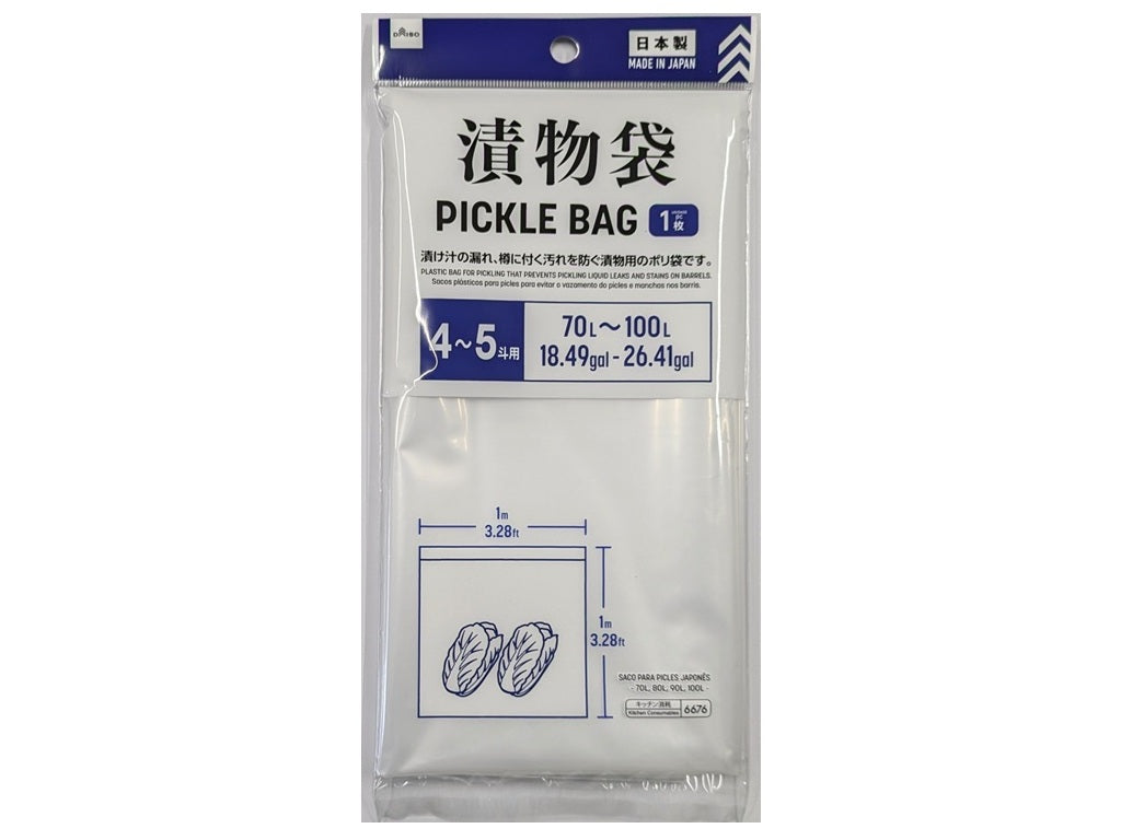 ●漬け汁の漏れ、樽に付く汚れを防ぐ漬物用のポリ袋です。●写真はイメージです。●漬物作りに便利なポリ袋●樽が汚れないのでお手入れが簡単●漬物による汚れ、色うつりを防ぐ●耐冷温度-30℃●厚さ:0.05mm●サイズ:横1000mm×縦1000mm●1枚入●内容量や樽のサイズに合わせて使用してください。●直射日光・高温多湿の場所を避けて、保管してください。●乳幼児の手の届かない場所に保管してください。●尖ったものや鋭利なものを入れないでください。●火や熱源のそばに置かないでください。●本来の用途以外に使用しないでください。