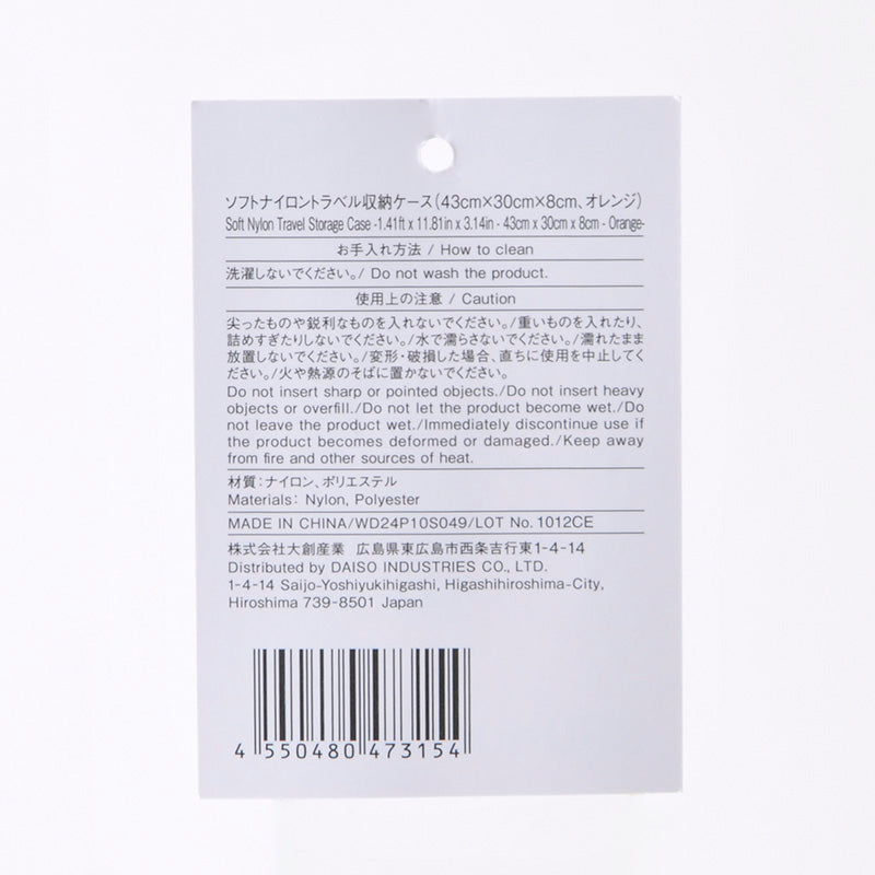 ソフトナイロントラベル収納ケース(オレンジ)43cm×30cm×8cm