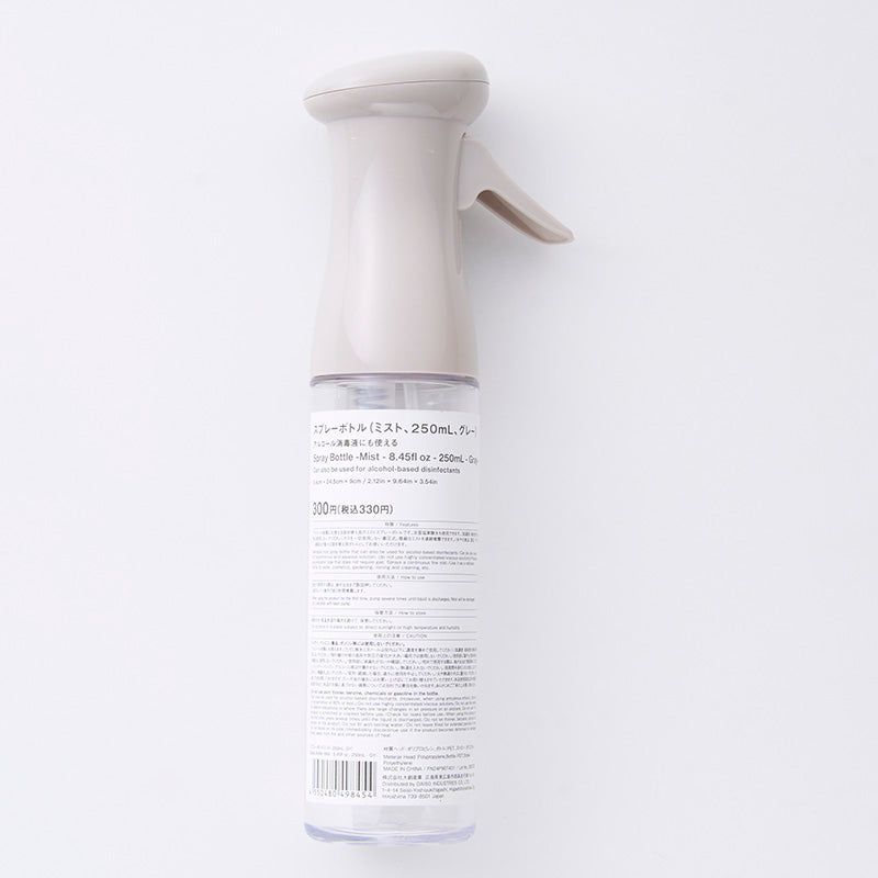 アルコール消毒液にも使えるアルコール除菌にも使える詰め替え用のミストスプレーボトルです。 次亜塩素酸水も使用できます。(高濃度・高粘度の液体は使用しないでください) ガスを一切使用しない蓄圧式。微細なミストを連続噴霧できます。 水や化粧品、園芸、アイロン、掃除など様々な詰め替え用ボトルとしてお使いいただけます。初めて使用する際は、液が出るまで数回押してください。 1回のレバー操作で約3秒間噴霧します。●直射日光・高温多湿の場所を避けて、保管してください。●シンナー、ベンジン、薬品、ガソリン等には使用しないでください。 ●アルコール消毒にも使えます。(ただし無水エタノールは80%以下に濃度を薄めて使用してください) ●高濃度・高粘度の液体は使用しないでください。●飛行機の中等の高所や気圧の変化が大きい場所では使用しないでください。●使用前に傷やヒビ割れ等がある場合は、使用しないでください。●使用前に液漏れがないか確認してください。●初めて使用する際は、液が出るまで数回押してください。●シンナー、ベンジン、アルコール等は付着させないでください。●熱湯を入れないでください。●長期間中身を入れたままにしないでください。●横置きしないでください。●変形・破損した場合、直ちに使用を中止してください。●火や熱源のそばに置かないでください。●生産に万全を期しておりますが、万一不良の場合にはお買い上げ店にてお取り替えさせていただきます。本品使用目的以外の使用に起因するなど、本品の欠陥に基づかない損害については当社では責任を負いかねます。あらかじめご了承の上お買い求めください。